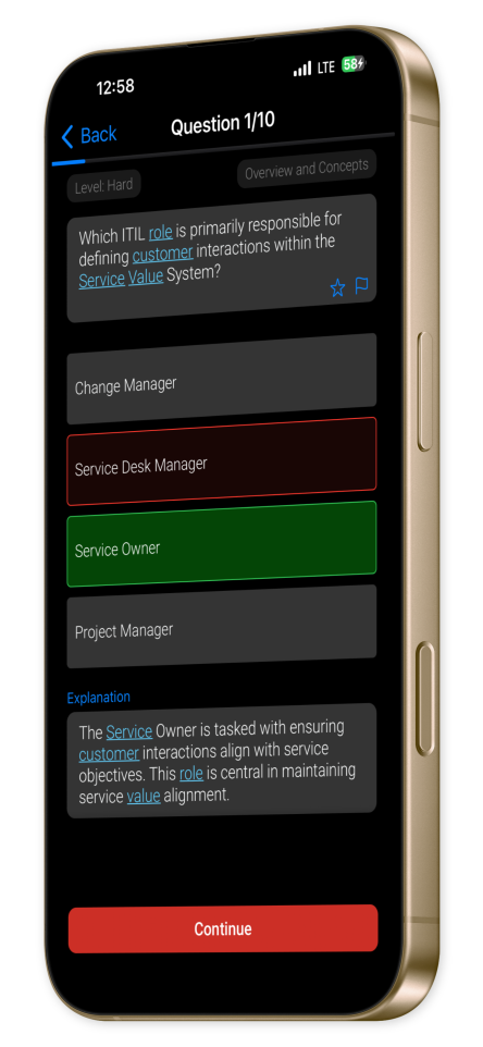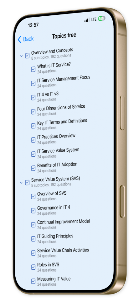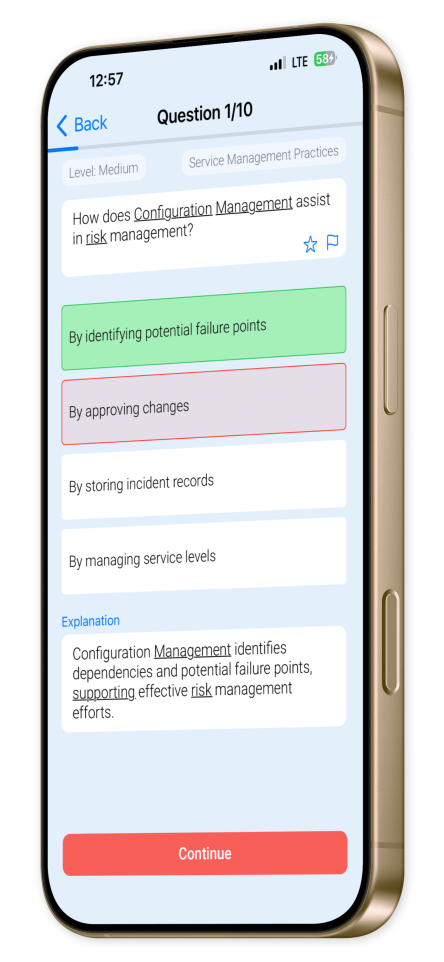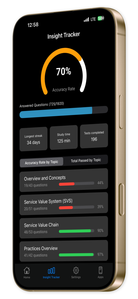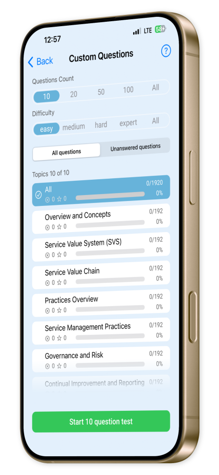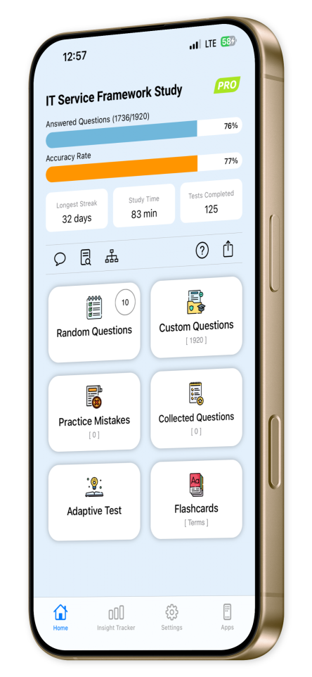 Our app is expertly crafted to simulate real exam conditions, providing a robust array of practice questions that encompass every critical aspect needed for IT Service Management certification.