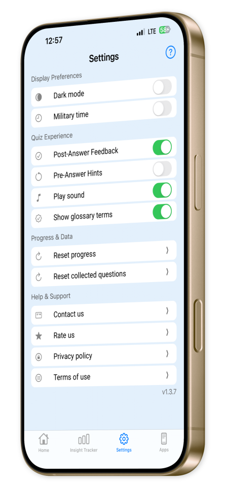 Custom Test Creation: Customize your study sessions by crafting quizzes that target specific topics and question types, enabling a focused approach to mastery.